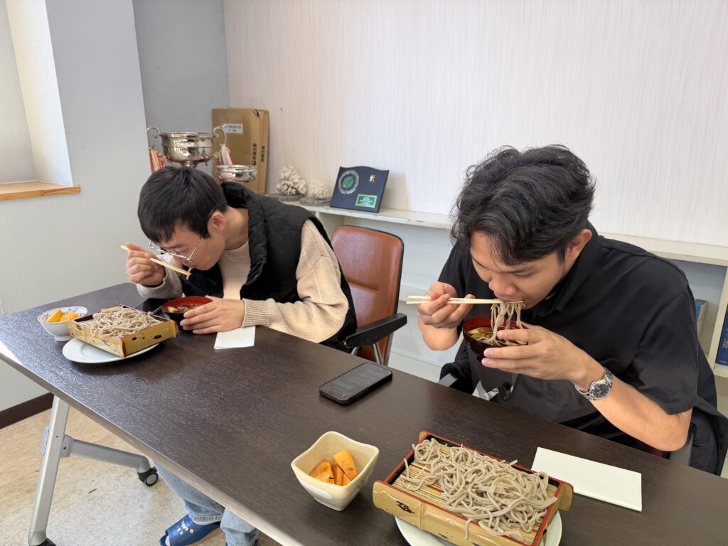 まずは、簡単な歓迎セレモニーを行い、ソバの試食となりました。